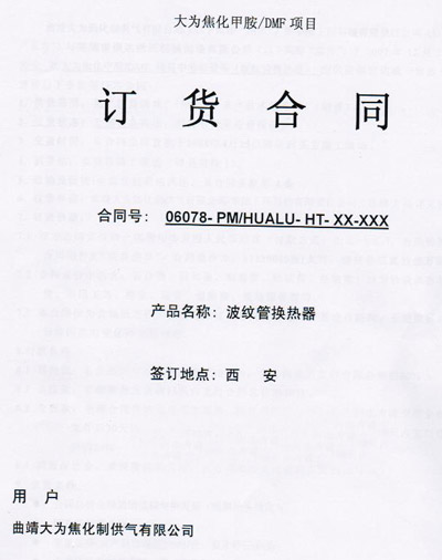 華陸工程科技有限責(zé)任公司向我司采購(gòu)波紋管換熱器用于曲靖大為焦化制供氣有限公司。具體設(shè)備包括:T-711塔冷凝器;T-721塔冷凝器;T-731塔冷凝器;T-741塔冷凝器;T-751塔冷凝器;T-811塔冷凝器;T-821塔冷凝器