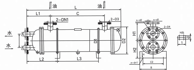 二、GLL型臥式冷卻器尺寸示意圖